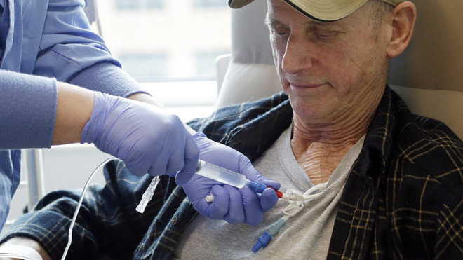Điều trị CAR-T sẽ bắt đầu bằng một thủ thuật giống như hiến máu. Claude Bannick là một bệnh nhân ung thư bạch cầu, được điều trị tại Trung tâm Fred Hutch vào năm 2014. Buổi trị liệu đầu tiên của ông bắt đầu bằng việc nối mình vào một cỗ máy lọc máu.